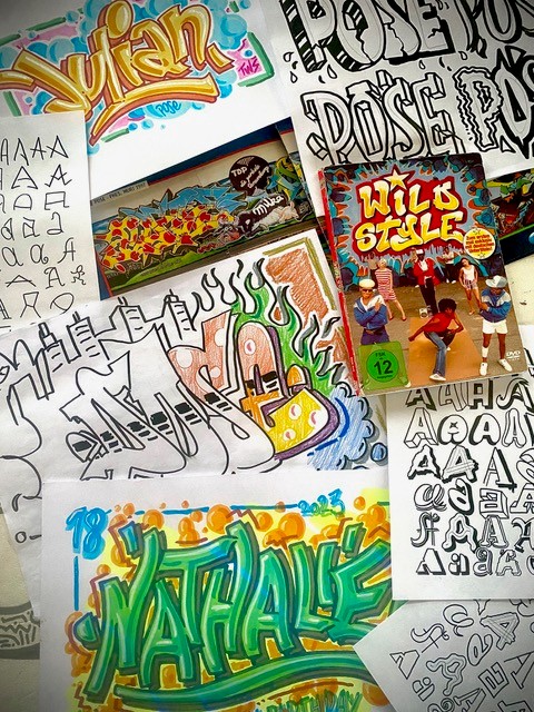 Du tauchst in die Geschichte der Graffiti Schriften ein. Unter Anleitung von Pirmin Breu lernst du, wie man spannende Schriften entwerfen und verzieren kann. Der Streetart Künstler Breu erlernte auch die Kalligrafie und das Lettering, was spannende Kombinationen ergibt.