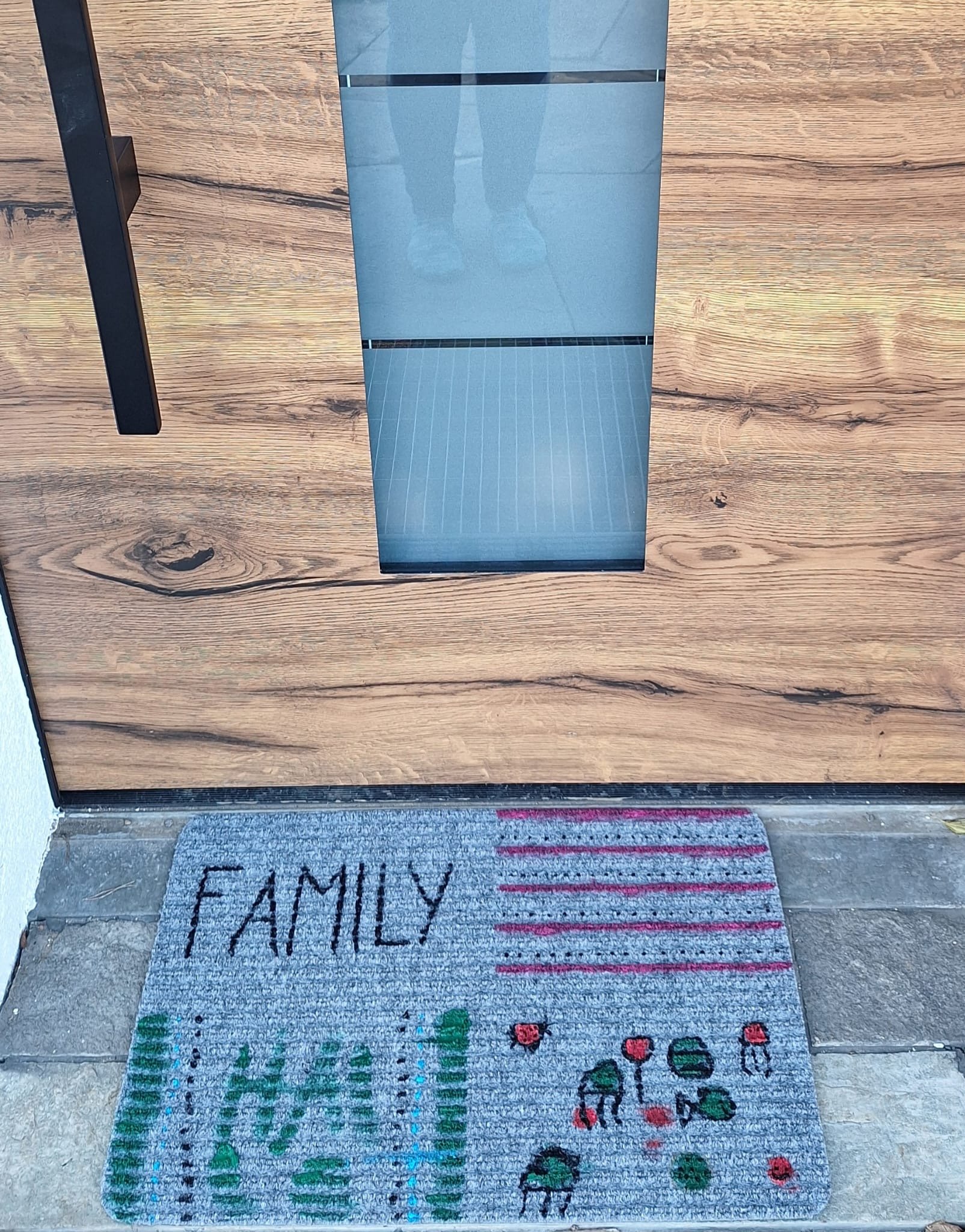 Bitte Kleidung anziehen, die schmutzig werden darf oder einen Malschurz mitnehmen. Die verwendete Türmatte kann von der Abbildung abweichen.
