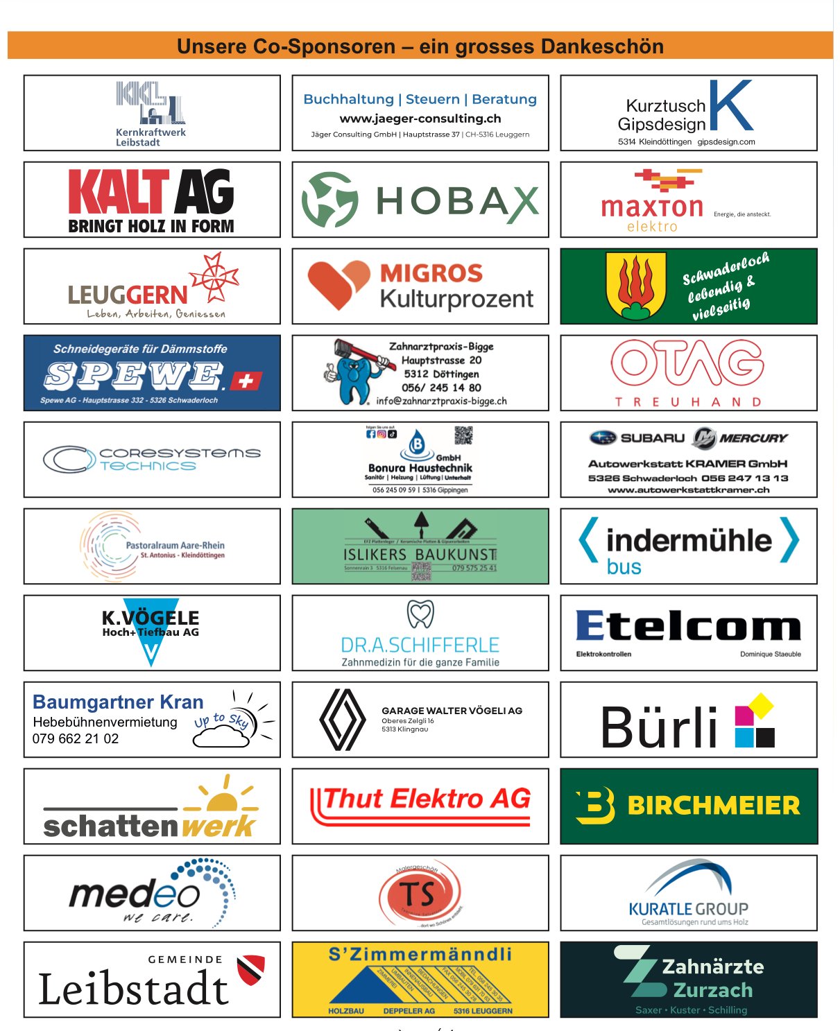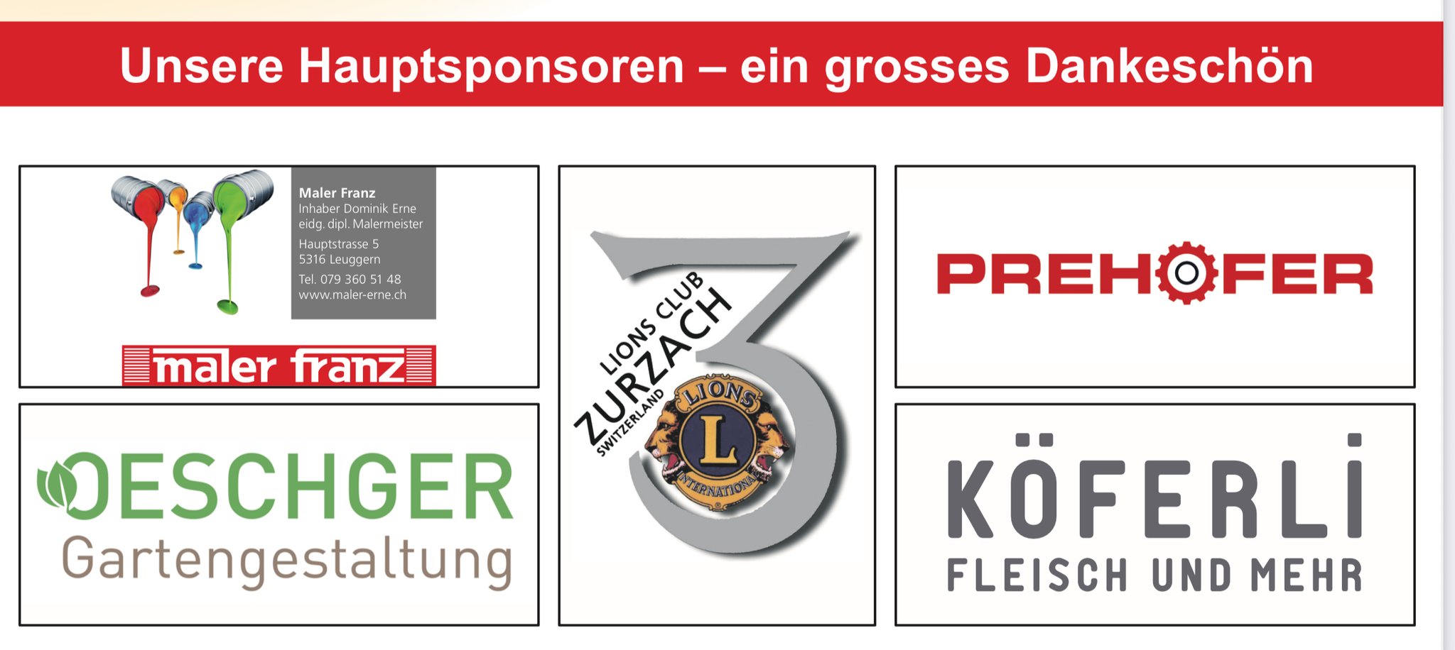Wir freuen uns, dass wir jeweils so gut unterstützt werden und unsere Sponsoren zeigen, dass sinnvolle Freizeitbeschäftigungen für unsere Kinder wichtig sind. Allen unten erwähnten Haupt- und Co-Sponsoren und allen weiteren Sponsoren gebührt ein herzliches Dankeschön!